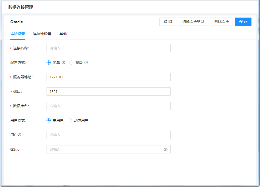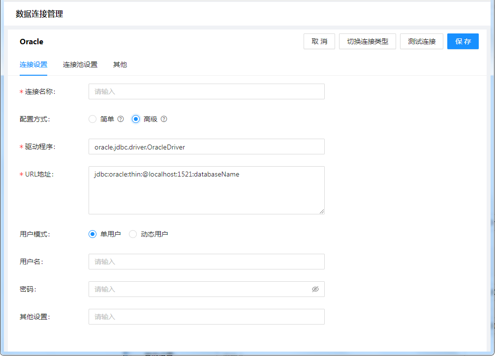 “连接池设置”和“其它”的配置,请参考:数据连接管理