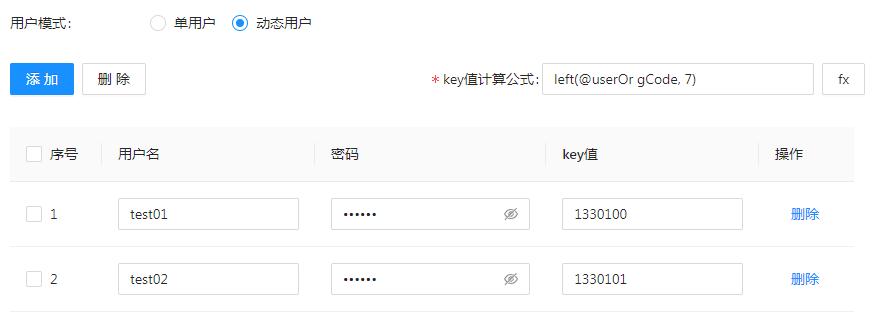 动态用户:用户名、密码支持配置多套,并配置对应的key值和key值计算公式,最终将按条件动态匹配用户能够访问哪个数据库,从而限制用户对数据库的访问权限。