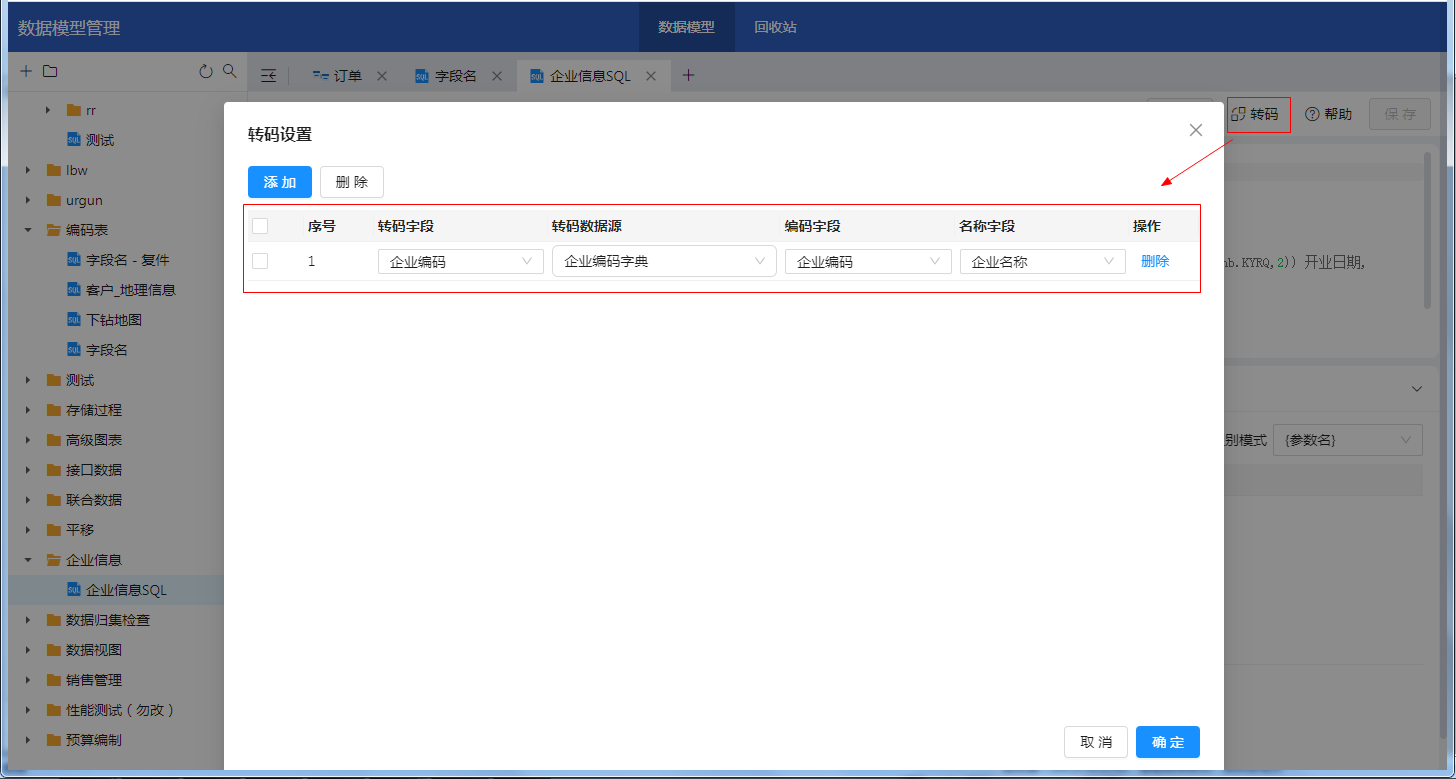 进入数据模型管理界面,点击全局“+”或某目录的“+”选择新建模型“SQL查询”,如下图: