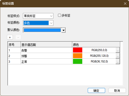 选择“单色”时,不论是否多标签展示,标签内容展示为同一种颜色只要配置一个默认颜色。