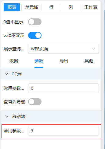 PC端可以设置常用参数个数和查询后是否隐藏参数面板,如下图: