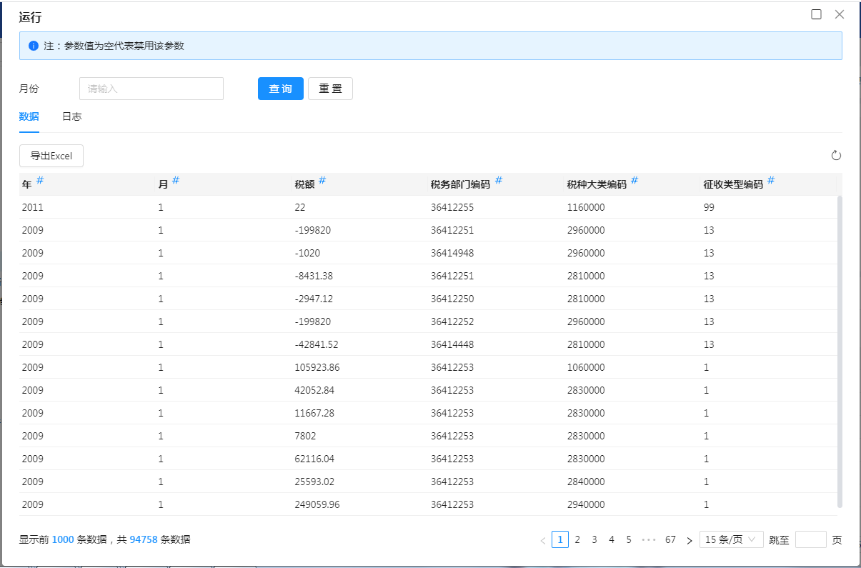 数据视图创建之后,通过 [运行] 查看取出的数据。如下图: