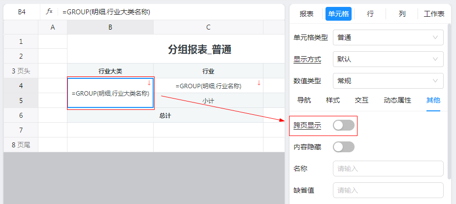 注:所有单元格默认都是“跨页显示”的,即“跨页显示”是勾选状态。