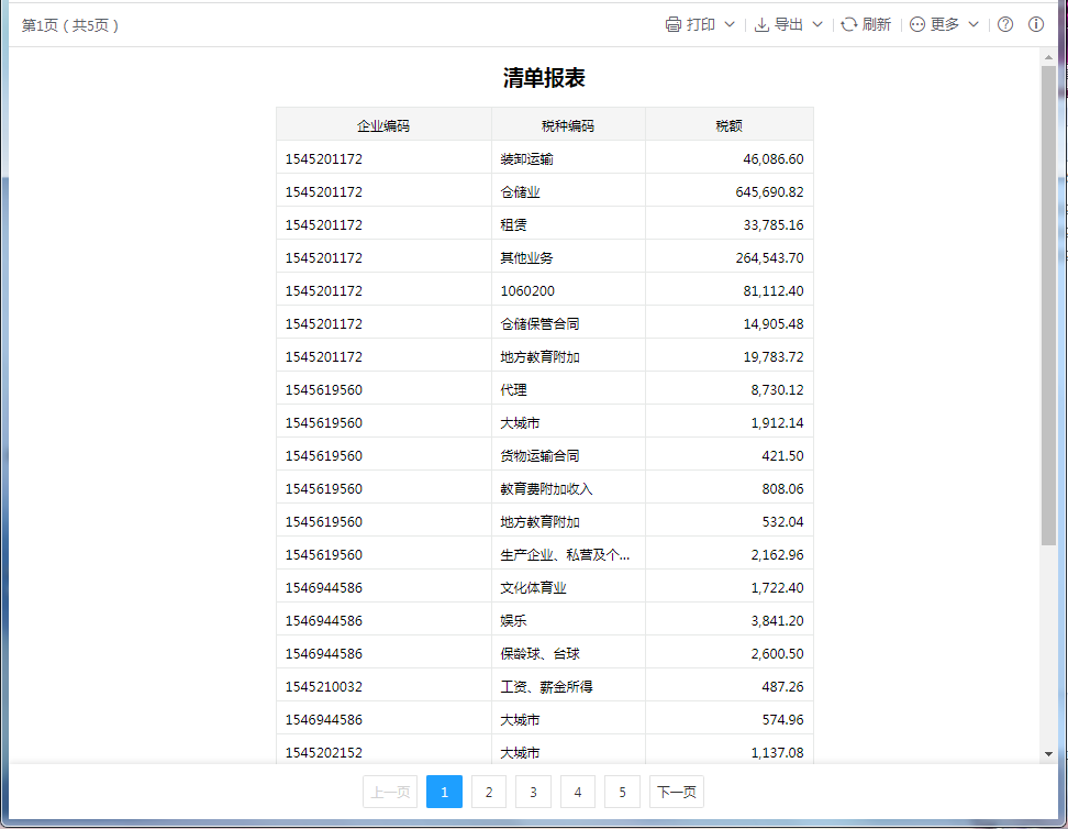 企业税额为例,查看各企业不同税种的税额明细,效果如下图: