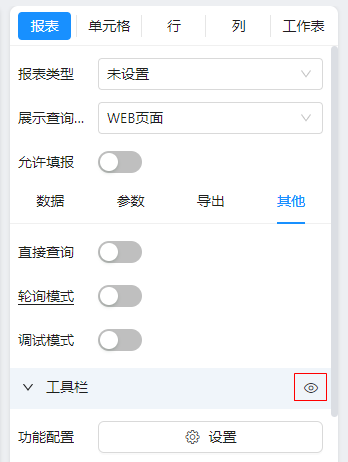 如果关闭工具栏右侧的“小眼睛”,则预览该报表时,工具栏将会隐藏。