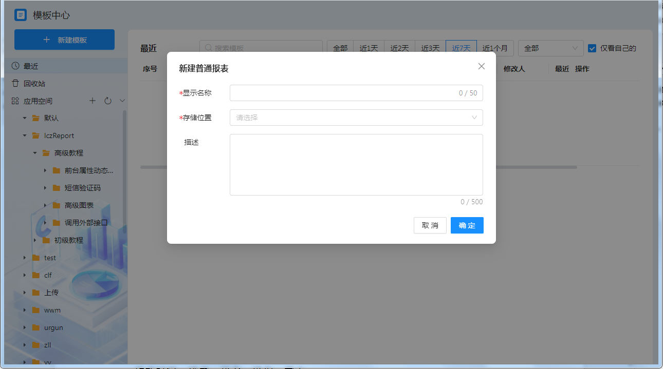 若新建模板操作前选中了应用管理中的某文件夹,则存储位置默认为该文件夹。