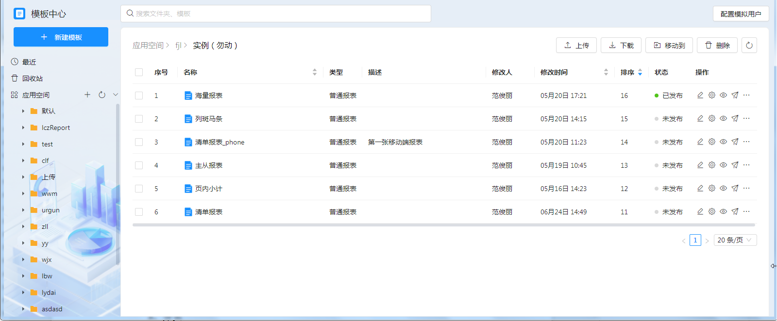 创建的所有模板均在“应用空间”中,支持创建文件夹进行分类管理。