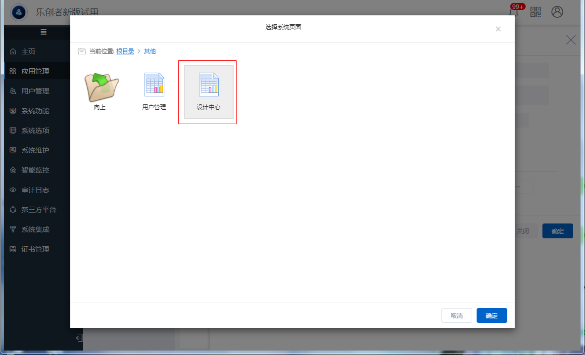 普通用户需要分配设计中心菜单访问权限并授权“应用设计”权限才可访问。